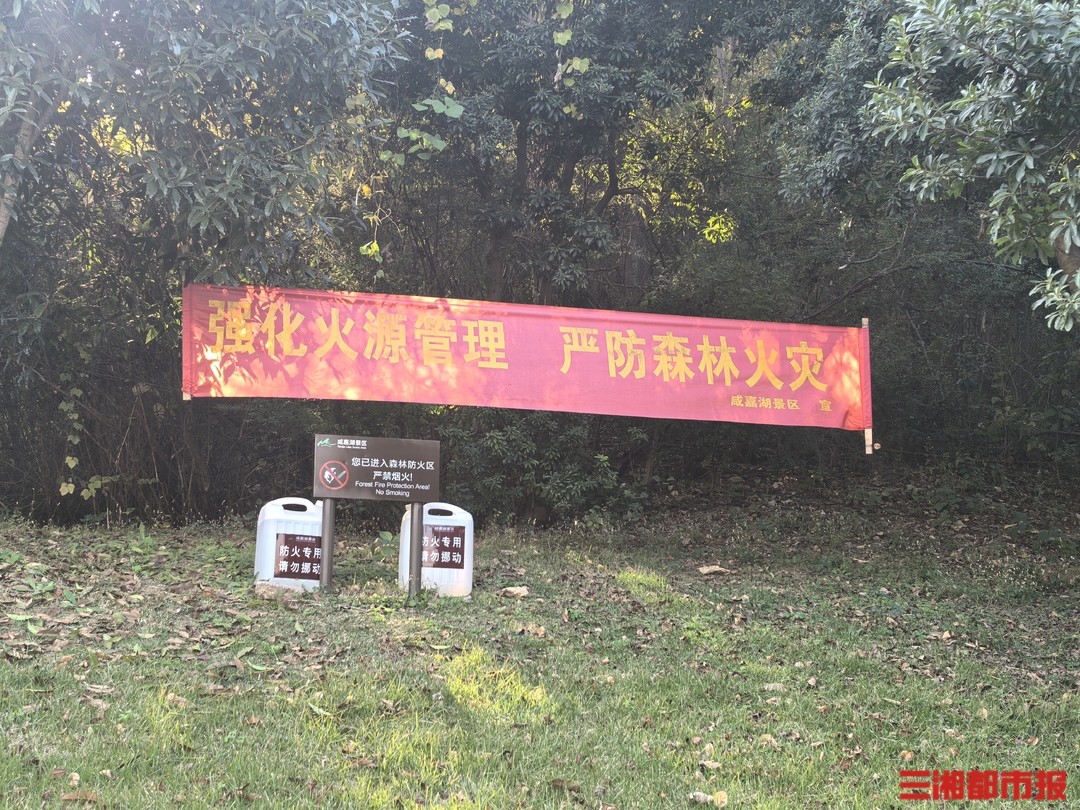 记者注意到,在湖边的公告栏上,贴有长沙市岳麓区人民政府发布的森林防火禁火通告。通告明确规定:严禁在禁火区内烧山边田埂,在林区野外丢烟头火种、烧马蜂窝、野炊、点火把照明、玩火。