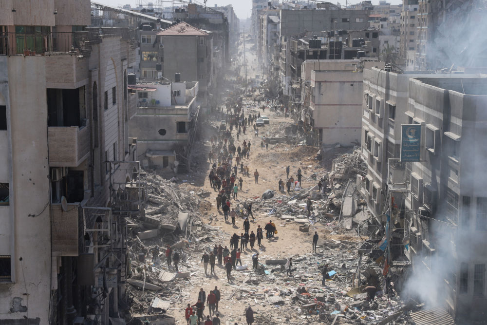 2024年4月1日,在加沙城,人们走在希法医院附近的街道上。新华社发(穆罕默德·阿里摄)