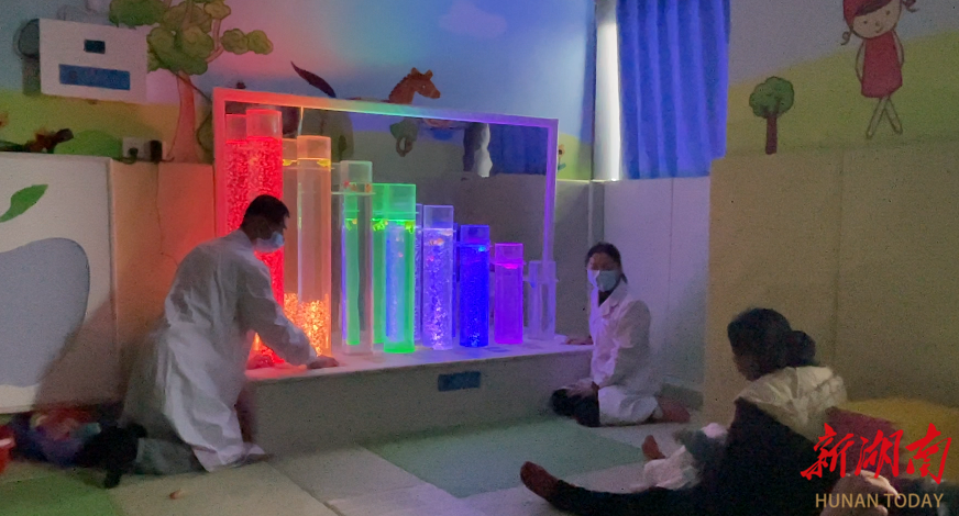 五彩音柱伴随着悦耳的音符缓缓流淌,患儿原本紧绷的面容逐渐舒展。谁能想到,眼前这位目光温和而笃定的少年,曾经也是一名在医院治疗的脑瘫患者。浩彬用自己的亲身经历,书写了一段令人动容的生命奇迹。