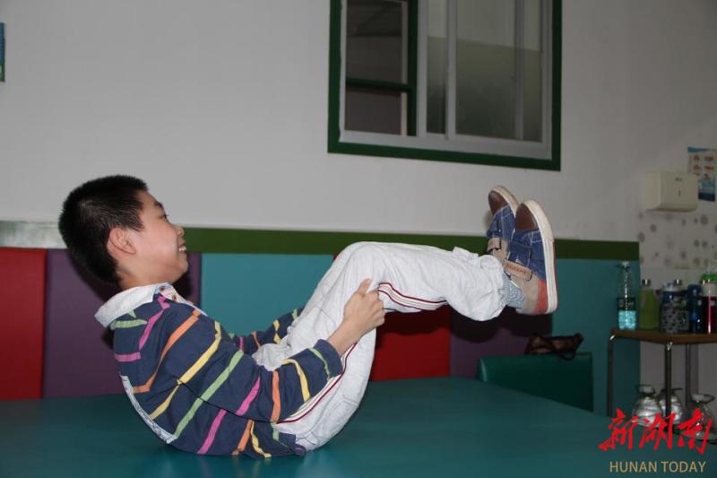 浩彬出生时,因早产、缺氧被诊断为痉挛型四肢瘫(重度脑瘫),身体如同“折翼的雏鸟”。高肌张力导致他出现“飞机手”“交叉腿”,连最基本的抓握、翻身都成了奢望。7个月大时,浩彬踏入了湖南省儿童医院,开启了漫长的康复之路。母亲罗女士回忆道:“抓下盖在脸上的小手帕,这个动作正常孩子4个月就会,我们却用了足足2个月。”在母亲的陪伴下,日复一日的运动训练、针灸、水疗…… 终于,在9个月大时,小浩彬完成了“抓手帕”这个具有“里程碑”意义的动作,而这仅仅是训练的开始。接下来,坐立、行走、说话、吃饭……这些对于普通孩子来说水到渠成的成长经历,都成为了浩彬需要努力克服的一个个训练“小目标”,而这样的“目标”贯穿了他的整个童年。