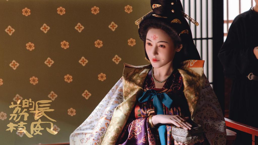 剧中人物长安十七娘(张天爱饰)出场造型中,披了一件浅青大宝花锦披。陈诗宇说,披袍也是盛唐流行的单品,披袍有袖子,但一般不穿进去,而是披在外面。十七娘这件外披的原型是收藏于日本正仓院的盛唐大宝花锦,这是存世尺寸最大的唐代宝花锦。前几年,陈诗宇的团队根据正仓院的藏品复原了这件宝花锦,这次正好用在了剧中。“这件织锦的颜色很艳丽,我们觉得跟十七娘的风格很搭,所以给她穿很合适。”陈诗宇说。