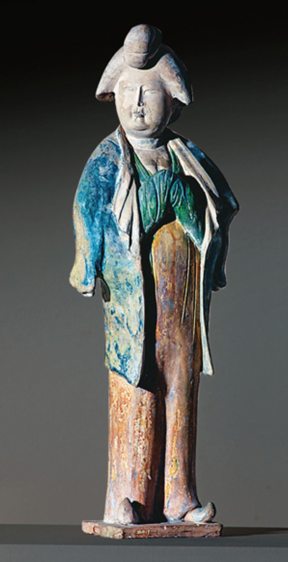 中国国家博物馆三彩披衣女陶俑,披袍被当作一件装饰披在身上