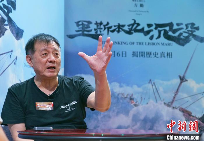 7月6日,香港工会联合会在香港铜锣湾一家影院举行纪录片《里斯本丸沉没》香港首映礼,以此纪念中国人民抗日战争暨世界反法西斯战争胜利80周年。该纪录片计划于本月在香港电影院线正式上映。图为《里斯本丸沉没》导演兼制片人方励接受中新社记者采访。 中新社记者 侯宇 摄