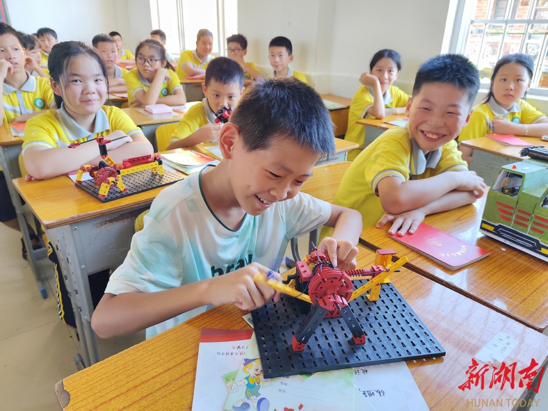 在兰溪镇学校,12名大学生志愿者利用模块化教学工具“慧鱼模型”,为40余名乡村学生开设“机械小课堂”。通过拆解杠杆结构、设计凸轮传动装置,让孩子们在动手实践中理解“省力奥秘”与“运动转换”原理。