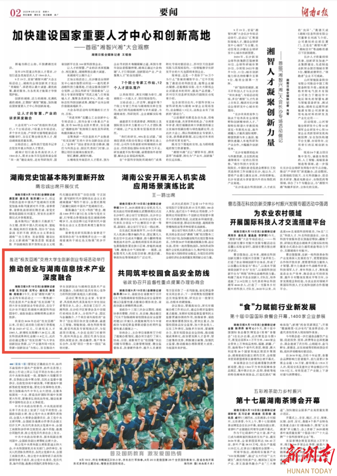我省自2024年启动“校友回湘”以来,目前已成功助力招商引资落地资金2023.67亿元,引进校友人才2385人,新增校友捐赠17.28亿元,落实科技成果转化金额11.8亿元。此次活动通过整合“校友回湘”与大学生创新创业资源,以“产业链布局+校友资源+创新创业”为核心,旨在推动大学生创新创业与湖南信息技术产业深度融合,为湖南打造具有核心竞争力的科技创新高地注入新动能。