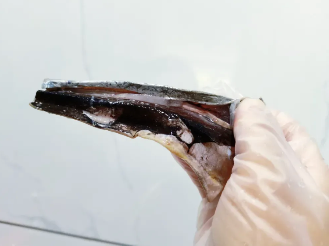 其次,撕掉腹腔内的黑膜,这也是腥味的主要来源。