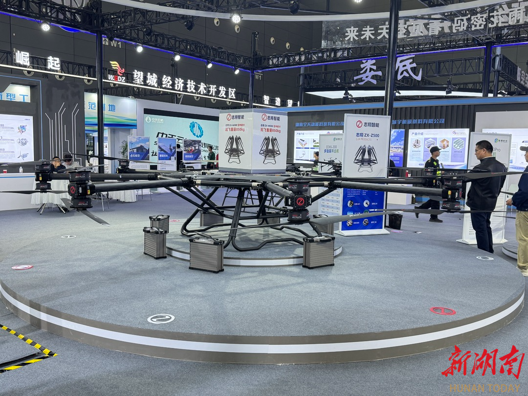 在湖南蓝源科技有限公司展台,LY多旋翼无人机展现出“六边形战士”的全面性能。“这款无人机能实现垂直起降,无需跑道和助飞设备。”蓝源科技联合创始人欧阳宸介绍,产品既能用于偏远山区、景区的物资运输,也可用于城镇、乡村的快递配送等等。