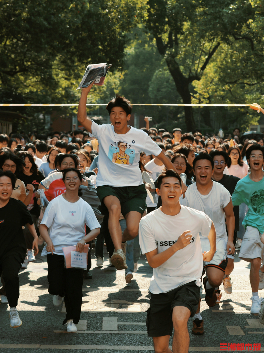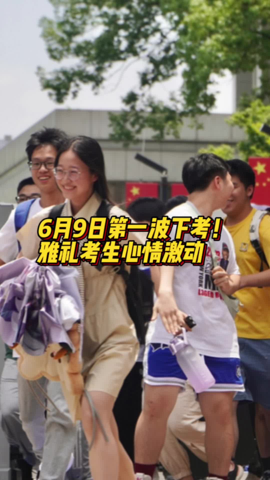 考生冲出校门开心到飞起