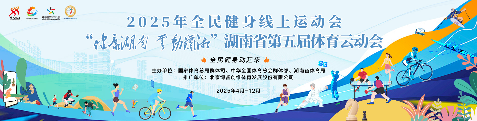 2025年全民健身线上运动会“健康湖南·云动潇湘”湖南省第五届体育云动会由国家体育总局群体司、中华全国体育总会群体部、湖南省体育局主办、中国体育彩票公益金支持。湖南云动会自2021年创办以来,历经四年实践,无论从办赛模式、体育+的融合,还是从项目设置的多样性、办赛规模等各方面,彰显出了湖南特色。湖南省第五届体育云动会设置体育云竞赛、体育+云活动、科学健身指导系列活动、体育类知识竞赛系列活动、“云跑湖南”潇湘跑团系列活动、体育直播、云动体育圈等7大版块的常态化赛事活动内容,以进一步完善湖南群众体育赛事活动的