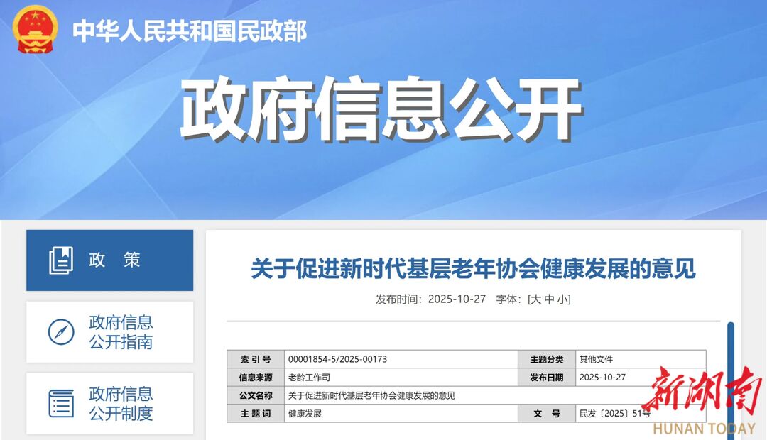 民政部等5部门联合印发《关于促进新时代基层老年协会健康发展的意见》