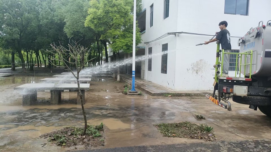 嘉禾二中:暴雨过后,师生齐心清理校园