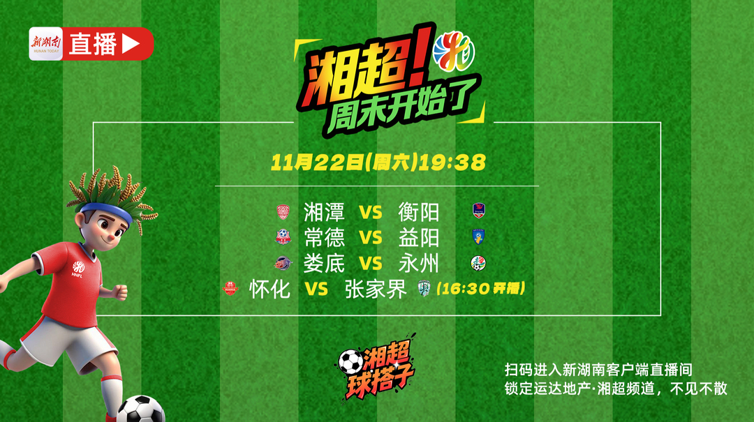 直播回顾 | 湘超:怀化VS张家界,衡阳VS湘潭、常德VS 益阳,娄底VS永州