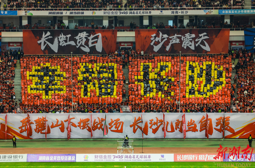 “湘军热血一直燃,湾湾迟早把家还”“湘超”现场现巨幅超燃tifo