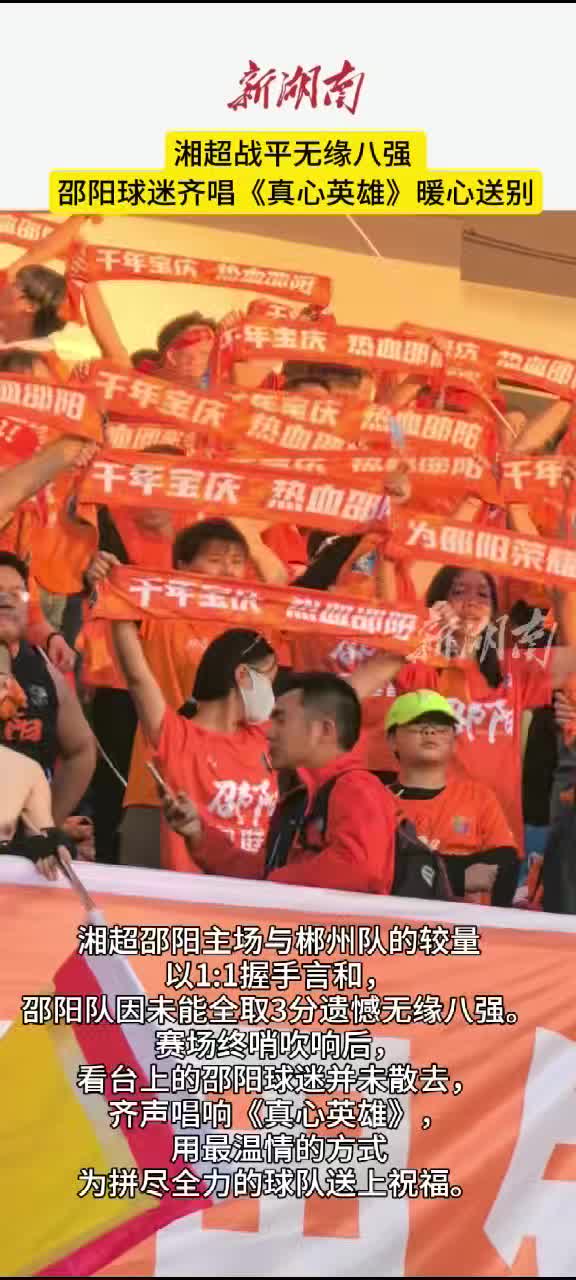 湘超战平无缘八强 邵阳球迷齐唱《真心英雄》暖心送别