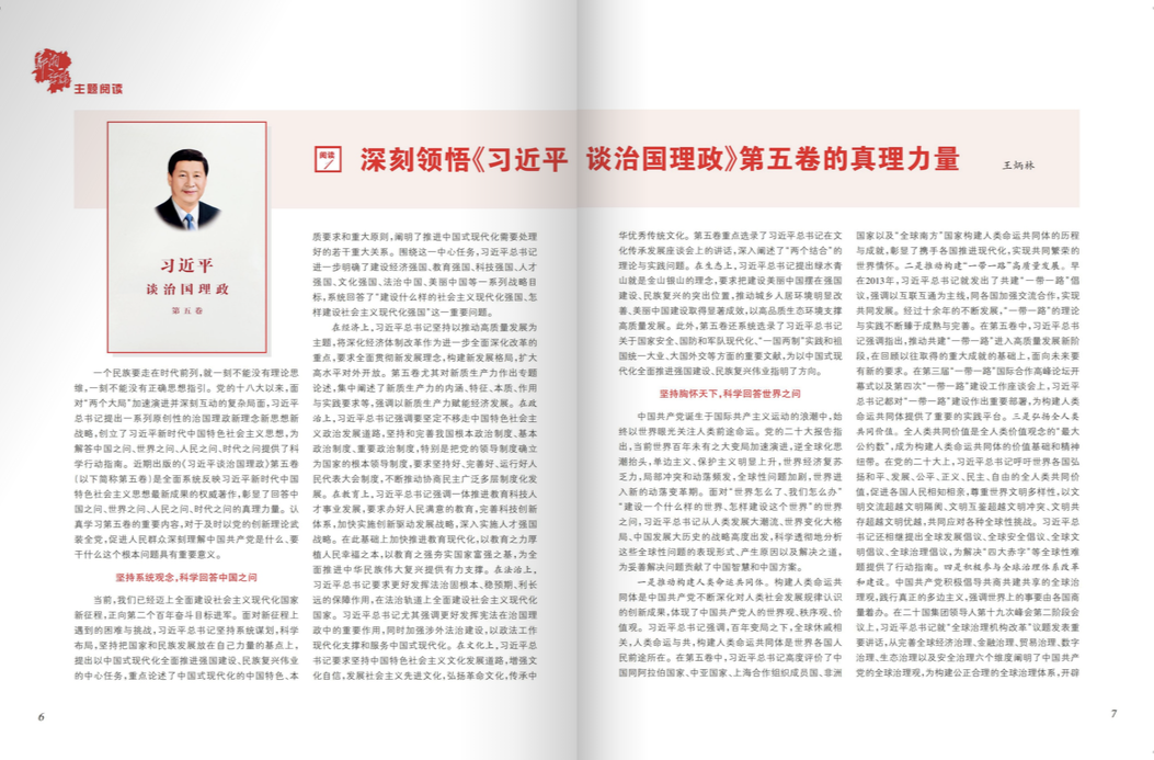 《习近平谈治国理政》第五卷是全面系统反映习近平新时代中国特色社会主义思想最新成果的权威著作,生动记录了习近平总书记带领党和人民继续进行伟大斗争、建设伟大工程、推进伟大事业、实现伟大梦想的历史进程。认真学习《习近平谈治国理政》第五卷,是用习近平新时代中国特色社会主义思想武装全党、教育人民、指导实践的重要举措。我们要按照党中央要求,精心组织安排,将《习近平谈治国理政》第五卷和第一卷至第四卷作为一个整体,引导广大党员、干部坚持理论联系实际的马克思主义学风,持之以恒读原著学原文悟原理,切实做到学思用贯通、知信行统