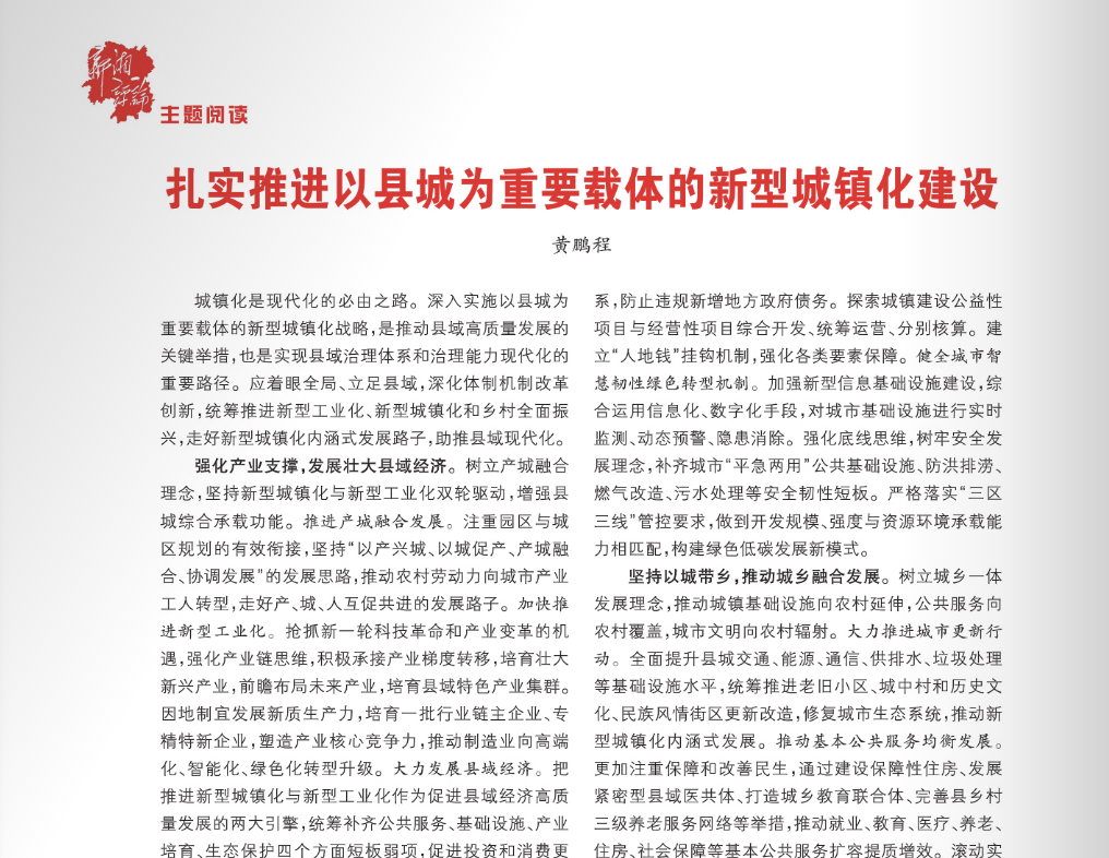 扎实推进以县城为重要载体的新型城镇化建设