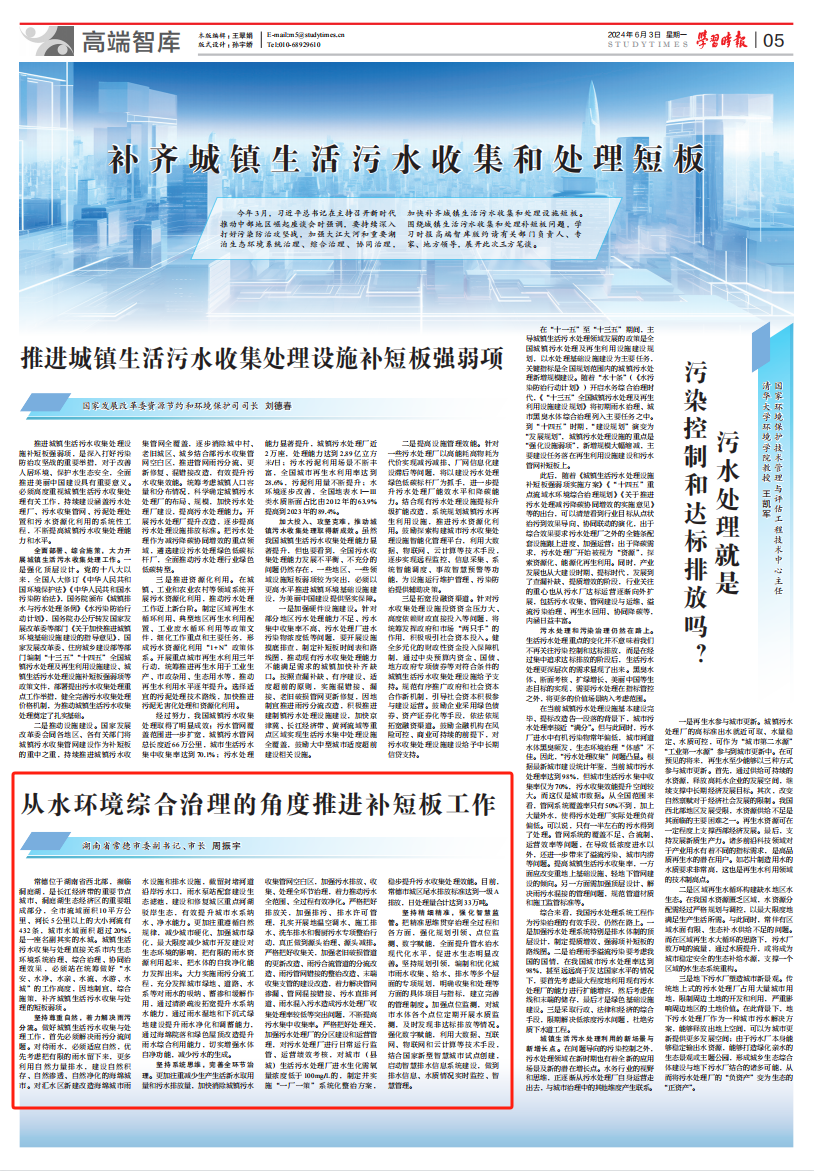 《学习时报》刊发周振宇署名文章——《从水环境综合治理的角度推进补短板工作》
