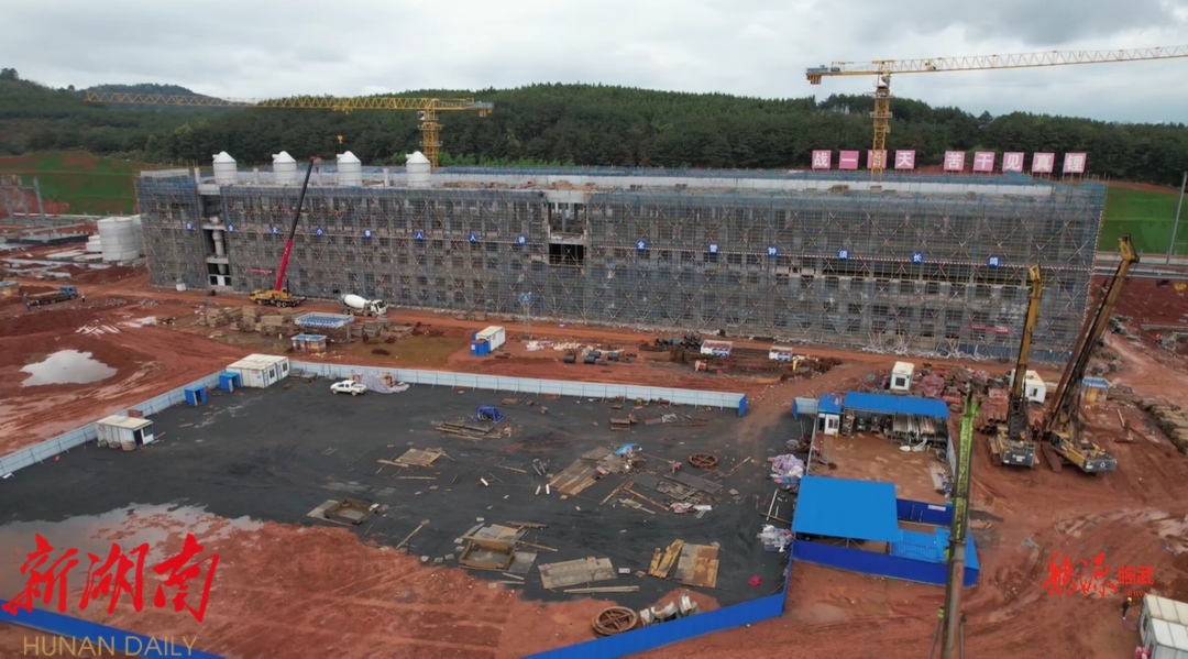 湖南安能旗胜新能源科技有限公司总经理 刘国嵬: 我们碳酸锂一期建设,土建已基本完成,现正进行钢构吊装、设备安装中,项目建成后可年产5万吨碳酸锂,这个产能不仅能满足我们企业的生产需求,还能为临武高新技术开发区其他的锂电池企业生产提供原材料。