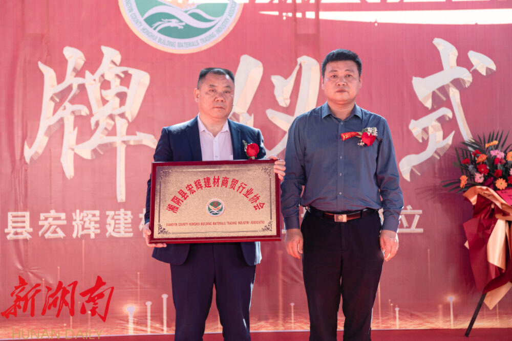 湖南日报·新湖南客户端3月30日讯(通讯员 邹丽 黄家睿)3月30日,湘阴县宏辉建材商贸行业协会成立授牌仪式举行。湘阴县委统战部、县商务粮食局、县民政局、文星街道等负责人,商户代表及协会成员近百余人参加。
