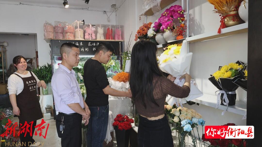 在县城一家花店门口,摆放着黄菊、白菊等各类适合祭祀的花卉,店主罗海燕正忙着修剪花枝、摆弄造型,准备供应清明市场。