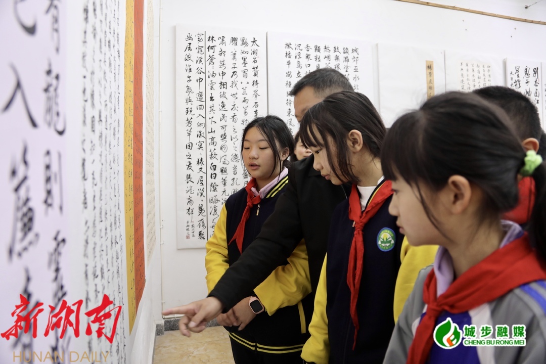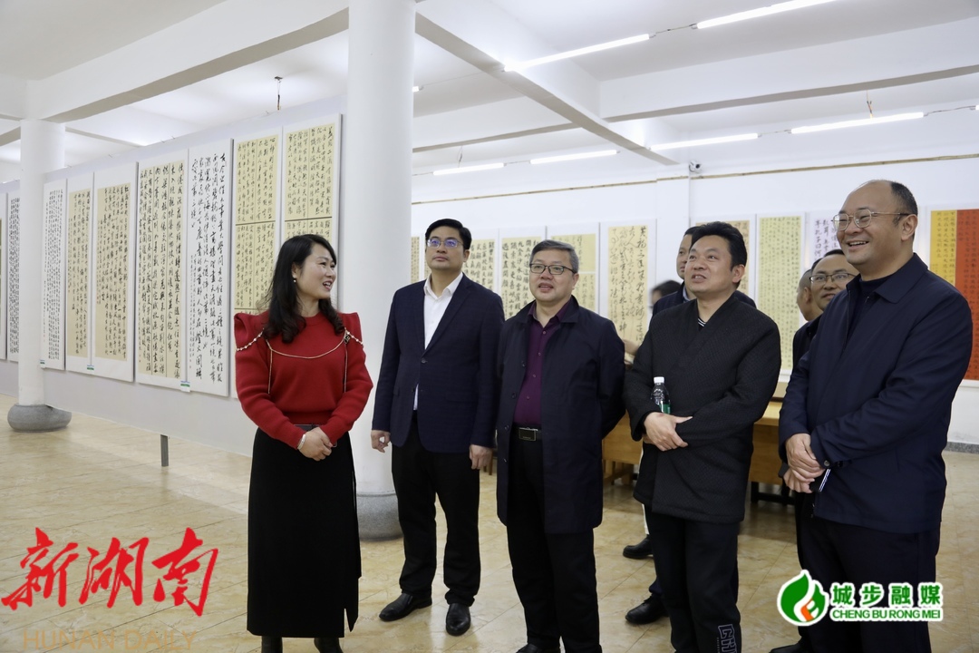 开幕式结束后,倪文华一行还一同前往展区参观了入选作品。展厅内,一幅幅书法展品感发人心,以艺术家独特的文化视角,回眸了新中国成立75年来的变化与征程,歌颂了党、歌颂祖国,书写了城步如诗如画的山水胜境以及绚丽多彩的民族文化,展现了苗乡发展的新风貌和广大群众的美好生活,引得众人赞赏不已。