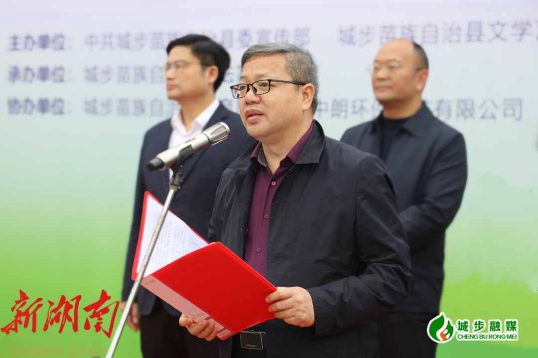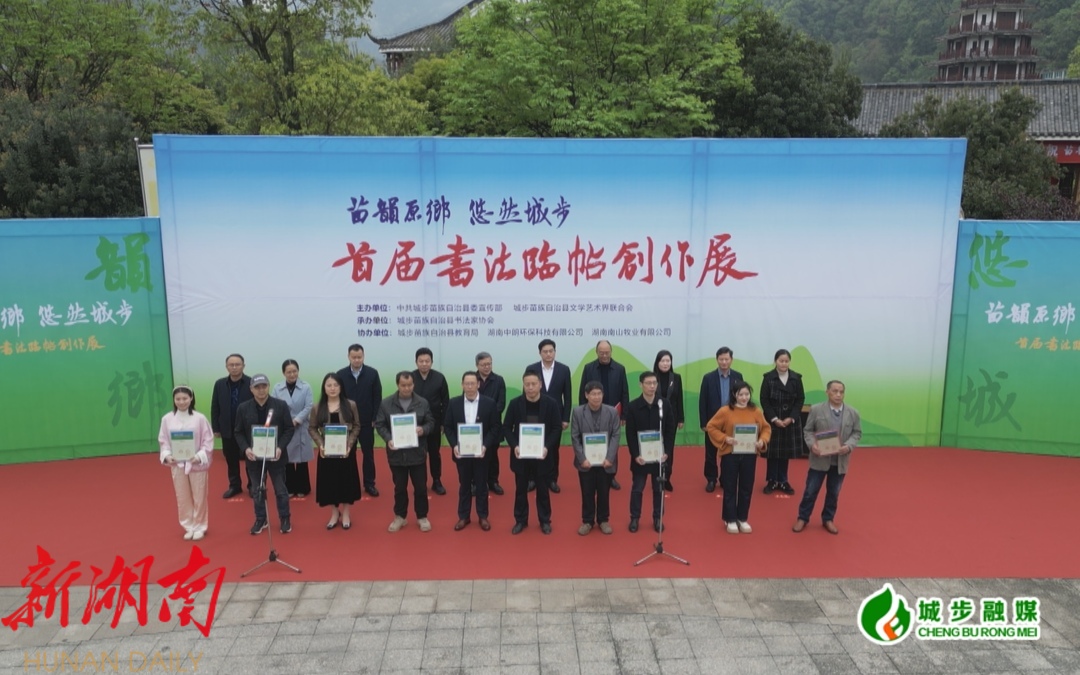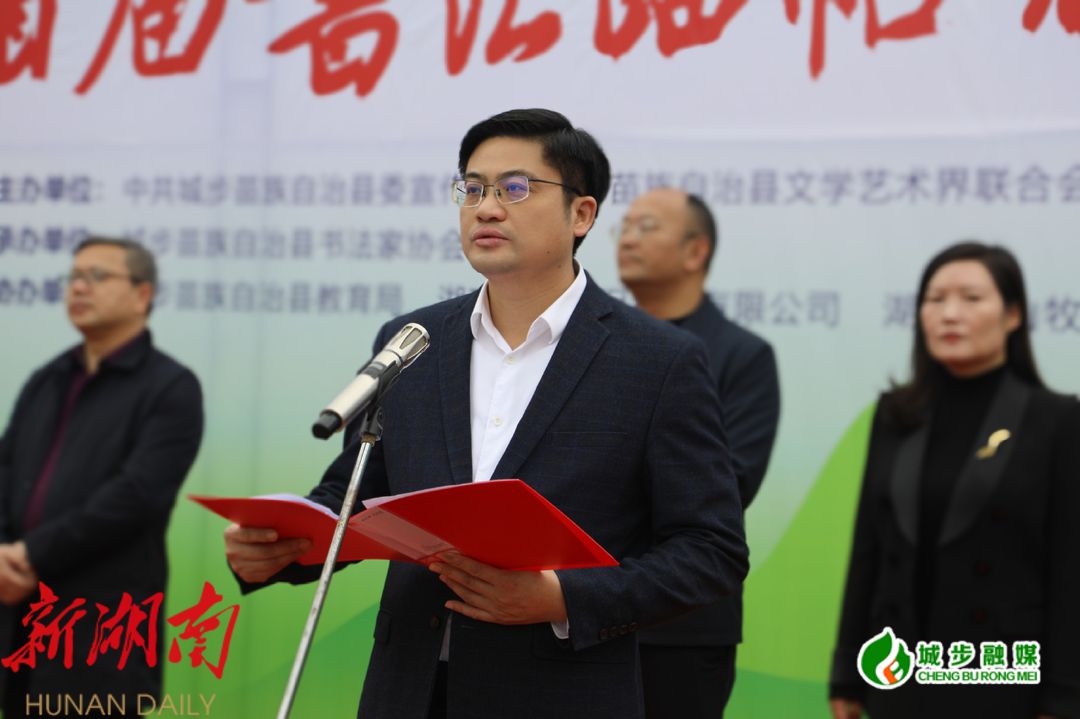 新城步客户端4月8日讯(记者 王蕾婷 刘沛含)4月8日,“苗韵原乡·悠然城步”——首届书法临帖创作展开幕式在城步南湖公园举行,展现苗乡发展的新风貌和广大群众的美好生活,进一步弘扬和传承中华优秀传统文化,坚定文化自信,推动文化繁荣。湖南省文联党组成员、副主席、省书协副主席倪文华出席开幕式并讲话,县委书记余勋伟致欢迎辞。