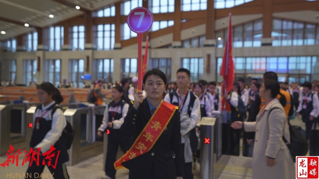 自湖南省中小学生“我的韶山行”红色研学活动启动以来,龙山北站为开好红色研学专列,“惹巴龙山”党员服务队有针对性地开展接送车服务,主动为年龄小的学生从进站到上车提供“一条龙”帮助。加强广播设备故障排查,做到广播设备状态良好,广播红色歌曲等节目语音舒缓柔和,音量适中,营造浓厚红色教育的火车站氛围。