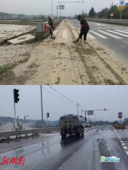 接到12345来电,白水镇干部立即联系毛岭村村干部第一时间到现场进行查看,了解到是附近农田机械工作后粘连的泥土掉落至道路。村干部立即联系保洁员和周边村民对路面进行清扫,并安排水车冲洗,消除了安全隐患。