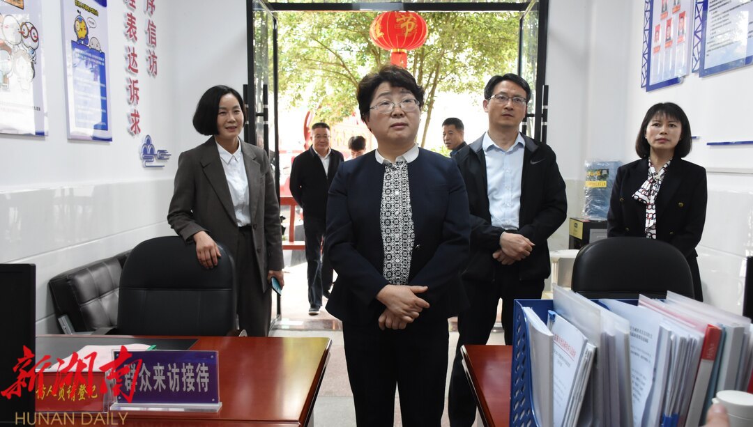 图为市人大常委会党组书记、主任周迎春一行在蒋坊乡了解人大代表进站履职情况