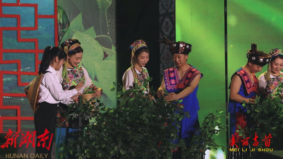 诗舞情景剧《梦中的那一片绿叶》,向观众展示了吉首市隘口村的湘西黄金茶,从“养在深闺人未识”,到“一两黄金一两茶”天下皆知的转变,再现了一代又一代湘西儿女,不断传承湘西黄金茶制作的感人画面;一群怀揣着茶业振兴之梦的追梦人,为湘西黄金茶发展作出贡献的动人画面。