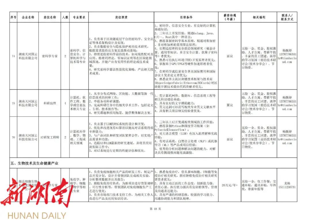 长沙经开区公布“百千万”人才工程2024年度重点产业博士需求目录