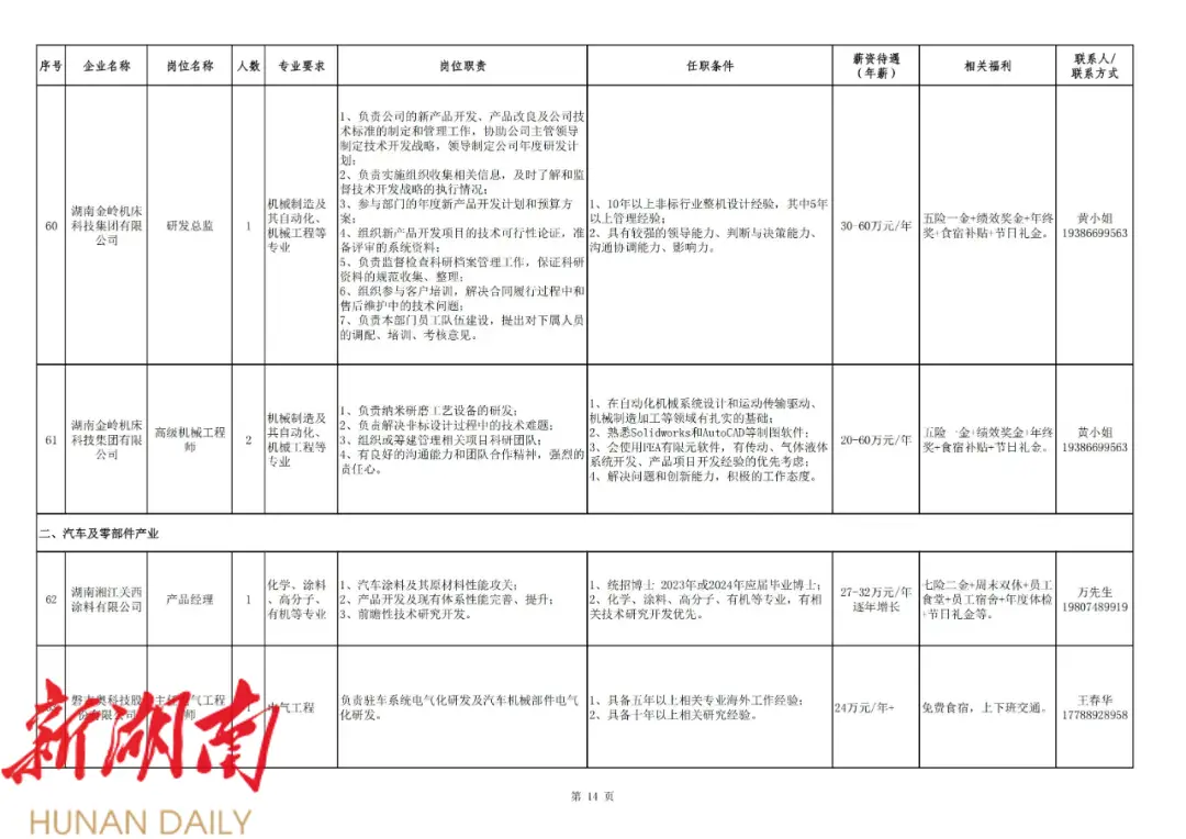 长沙经开区“百千万”人才工程2024年度重点产业博士需求目录