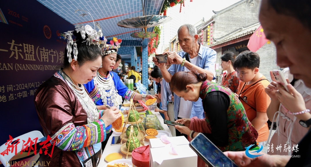 靖州融媒4月15日讯 (记者 钟屿右 通讯员 胡钦俊)4月12日,由广西壮族自治区文化和旅游厅、南宁市人民政府共同主办的第二届中国——东盟(南宁)非物质文化遗产周在南宁市邕州古城•三街两巷拉开序幕,靖州苗族侗族自治县国家级非遗项目——雕花蜜饯制作技艺吸引了大量游客驻足观赏。