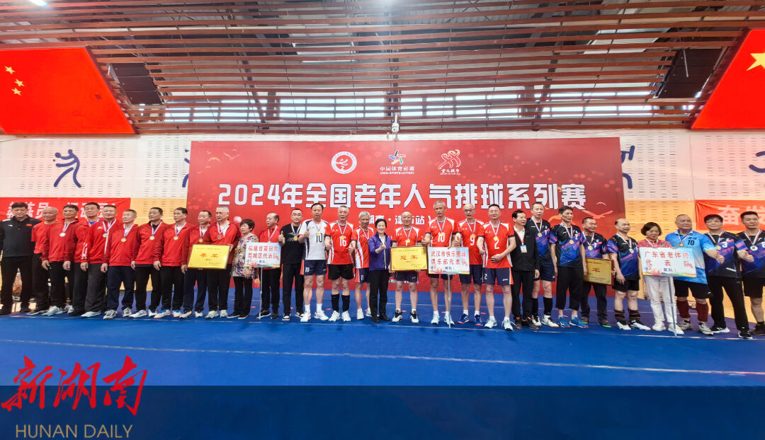 4月14日下午,2024年全国老年人气排球系列赛(湖南·津市站)在津市五环体育馆闭幕。