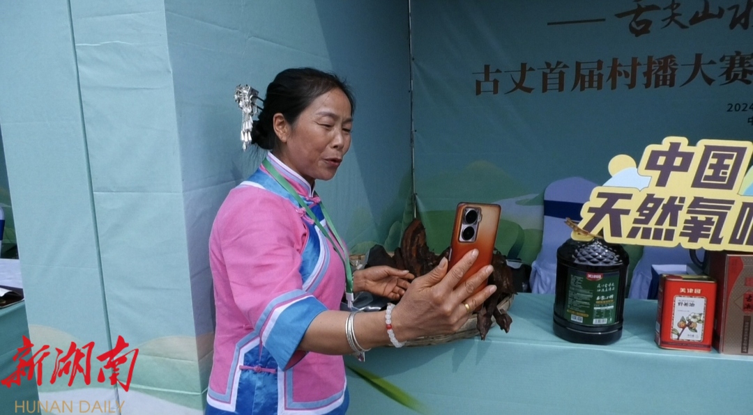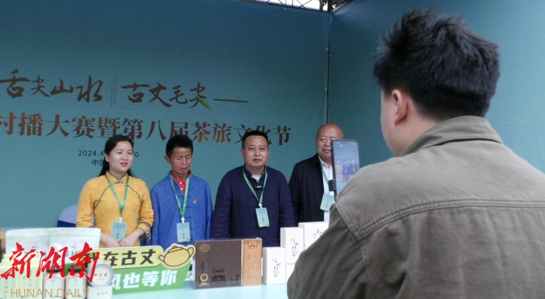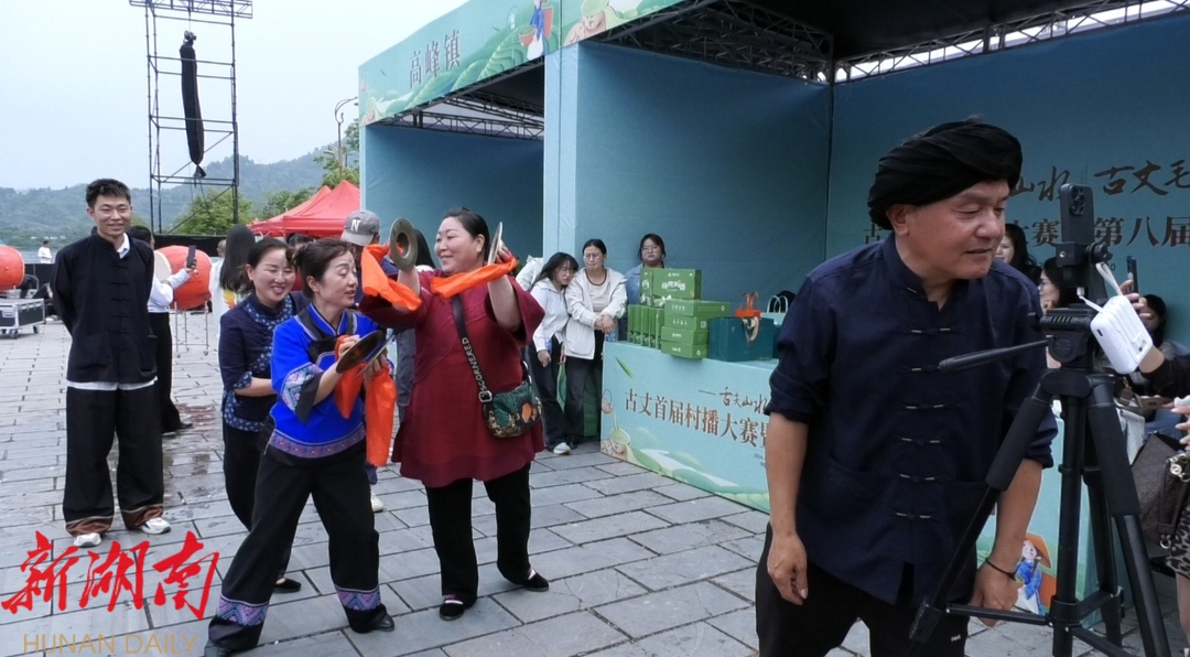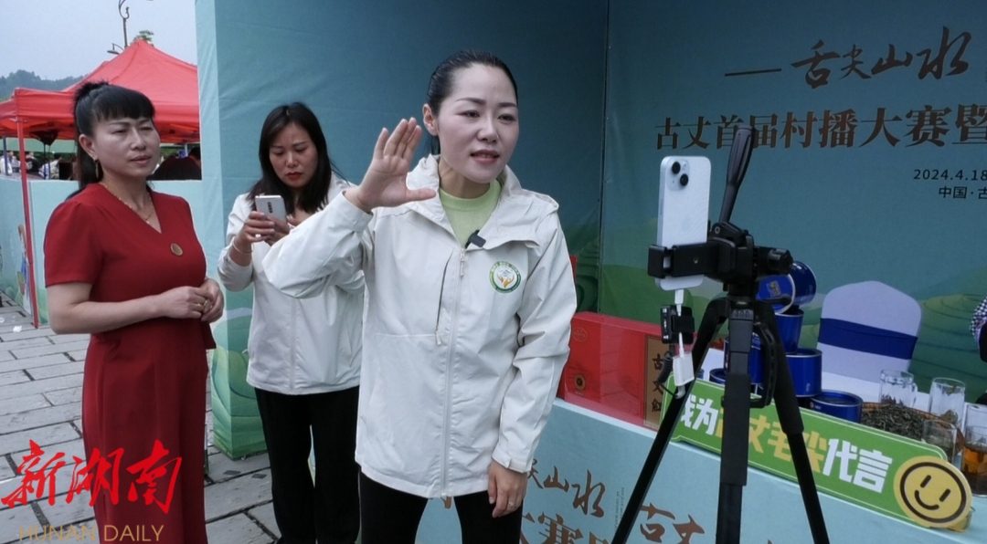 “欢迎大家来到我的直播间,朋友们点点关注点点赞。”“现在我们正在村播大赛开幕式的现场,现场十分热闹。”“这是我们湘西有名的腊肉,这是我们的古丈毛尖……”主播们在镜头前如鱼得水的精彩表现,是开幕式现场一道亮丽的风景线。