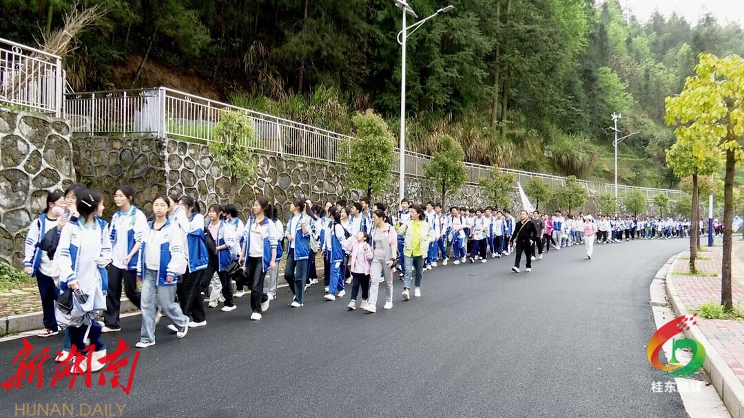 桂东县融媒体中心4月13日讯(记者 钟韬)4月13日,桂东一中开展2024年户外远足暨全民健身活动,高二年级全体师生1100余人参加。