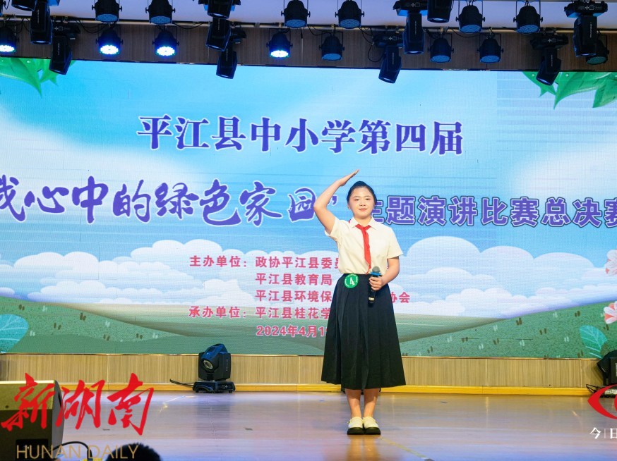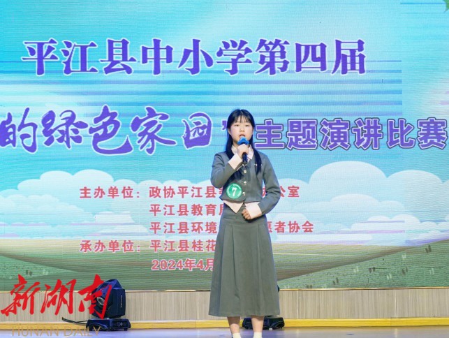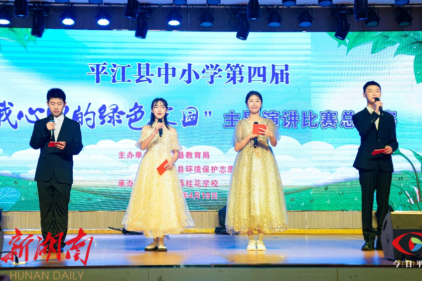 4月19日,在第55个世界地球日来临之际,平江县举办中小学生环保演讲比赛,倡导关爱地球,保护环境。