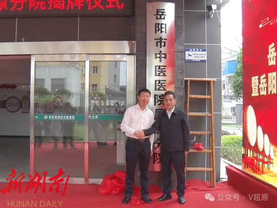 湖南日报·新湖南客户端4月23日讯(通讯员 魏璐璇) 4月22日,屈原管理区中医医院暨岳阳市中医医院屈原分院成立揭牌仪式举行,并同步开展“中药中国行”屈原站大型义诊活动。岳阳市卫健委党组书记、主任余岳雄,岳阳市中医医院党委书记方奎明,区党委书记向科军出席仪式并致辞。区党委副书记、管委会主任沈小星,岳阳市中医医院党委副书记、院长黎珊出席仪式。区管委会副主任徐胜主持仪式。