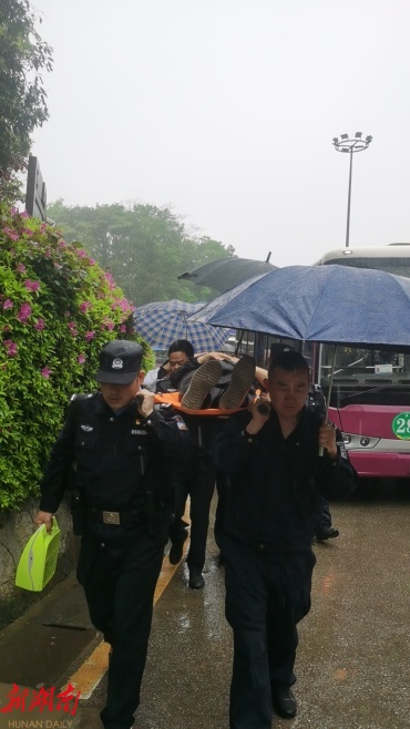 接到求助后,景区立即启动了“应急救助救治圈”机制,袁家界景区执法队与派出所迅速行动,第一时间联系红十字救护站的医生, 并同步与患者家属取得联系,告知她们救援人员将在5分钟内赶到现场。同时, 袁家界管委会积极协调各方力量,与环保客运公司、百龙电梯以及武陵源区人民医院紧密联动,迅速开通绿色通道,确保救援通道畅通无阻。经过救援人员的紧密协作和不懈努力,患者被迅速、安全地送至百龙天梯下站等待的急救车上,为后续治疗赢得了宝贵时间。