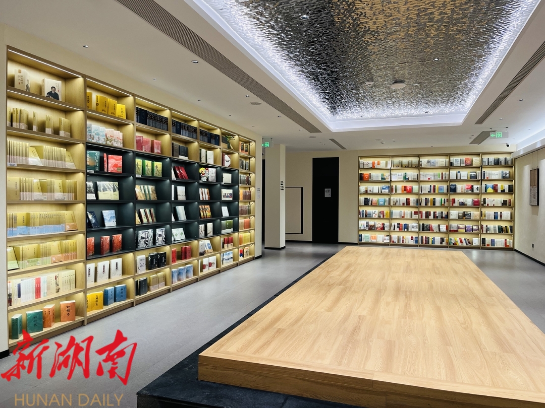 走进书店,映入眼帘的是艺术主题长廊。《七律·长征》《七律·人民解放军占领南京》《七律·到韶山》按序陈设,擦亮了红色文化品牌,展现了一代伟人毛泽东雄才伟略豪放阔达的一生。