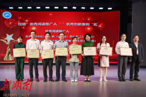 活动中,还颁发了湖南科技大学校级“中华经典诵读大赛”“书画摄影比赛”“优秀阅读推广人”“优秀创新案例”“优秀组织奖”,湖南省高校图工委“书法大赛奖”“书香班级奖”“书香班级优秀指导老师奖”、湖南省教育厅“优秀读书报告奖”“书香班级”等奖项。“优秀阅读推广人”人文学院副书记罗振军同与会者分享阅读推广经验—要读书,背书,听书,倡导青年学生在书中寻找答案,经典中孕育智慧。机电工程学院学生代表刘功凌则向大家分享了他在诗书中的收获,激励同学们在阅读与写作中不断前行。