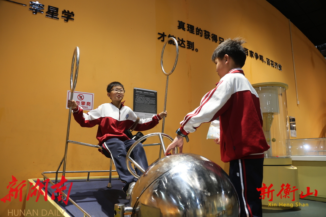 【衡山县宝米学校的学生们正在湖南省科技馆体验科技展品 赵诗 摄】