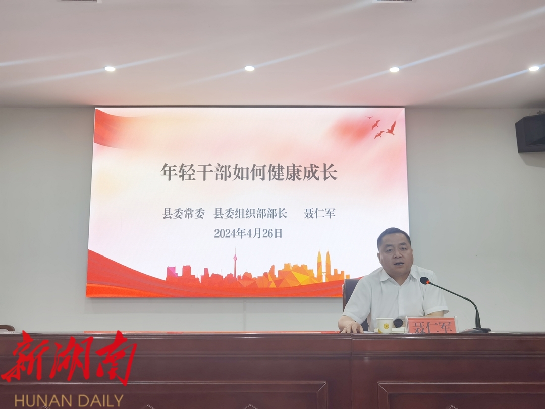 新湖南客户端4月26日讯(记者 齐菲 通讯员 张艺)4月26日上午,湘西土家族苗族自治州古丈县委常委、县委组织部部长聂仁军应邀来到古丈县委党校,以《年轻干部如何健康成长》为题,为古丈县2024年中青班学员进行专题授课。