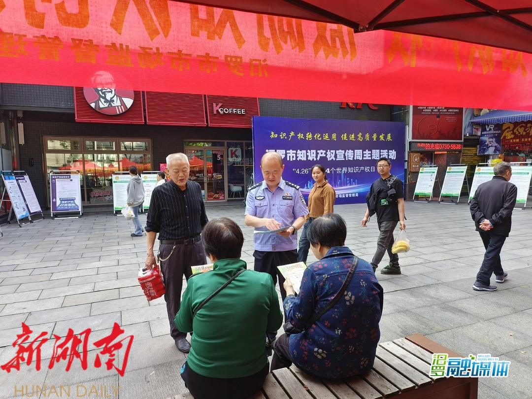 湖南日报·新湖南客户端4月26日讯(通讯员 周旺盛 叶磊)4月26日是第24个“世界知识产权日”,当天,由汨罗市“扫黄打非”办牵头,市市场监督管理局、公安局、新闻出版局、政务公开办等部门单位联合在天恒超市前坪开展知识产权宣传周暨政务公开主题月宣传活动,全面提升社会公众知识产权保护意识,深入推进我市国家知识产权强县试点建设。