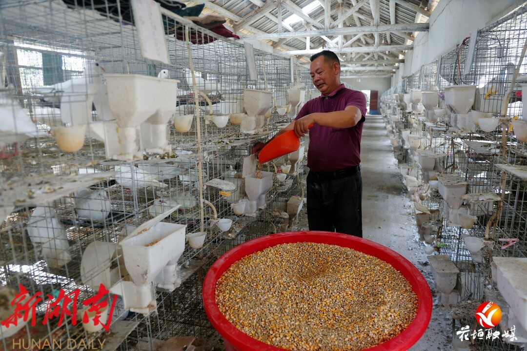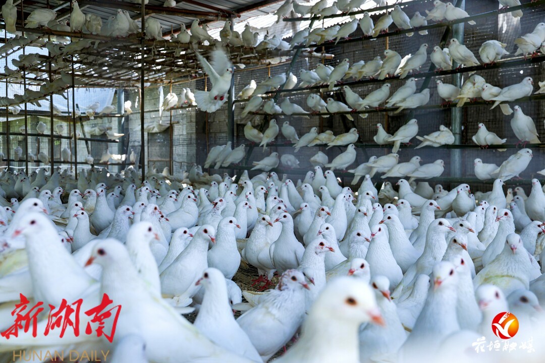 “在鸽棚里,把鸽蛋捡到孵化机里面,经过18天孵化后产出幼鸽,然后在一个笼子里放进3至4只幼鸽,由种鸽进行投喂......”4月28日,在位于花垣县麻栗场镇溜豆村的湘西鸽岭生态农业有限责任公司肉鸽养殖基地,技术员们正在查看肉鸽长势和投喂饲料。