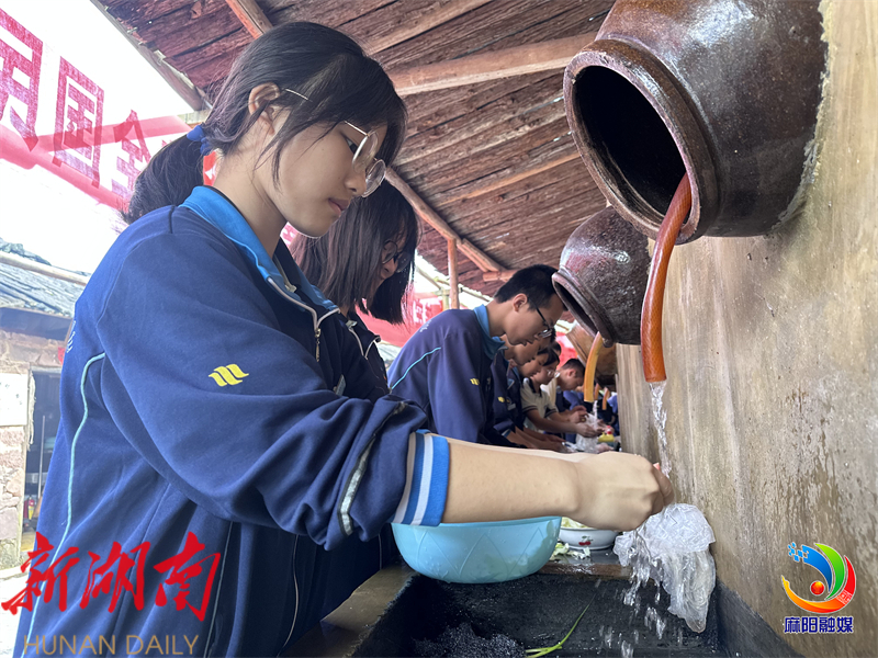 景区内,学生和老师一起在农家小灶屋里准备自己的晚餐,大家分工合作,烧火、切菜、翻炒,忙得不亦乐乎,最后大家围坐在长龙桌上,共同品尝自己的劳动成果,感受原始的乡村耕作模式,体验了老一辈的生活。来自怀化市三中的高二学生彭秋明月感慨道:“通过这次实践活动,我深感现在的美好生活来之不易,老一辈以前的生活有多艰难,所以我以后一定要好好学习 ,回报他们,回报社会。”