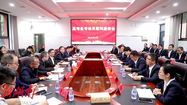 4月29日,四大家主要领导高考备考动员慰问座谈会在市一中明道楼四楼会议室召开。市委书记黄旭峰,市委副书记、市长彭子晟参加会议并讲话。