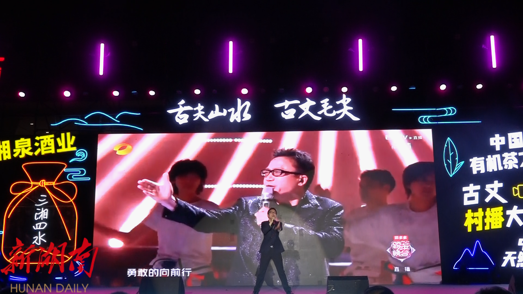 新湖南客户端4月30日讯(见习记者 杨文馨)4月30日,湘西土家族苗族自治州古丈县首届村播大赛决赛暨颁奖晚会在古丈西站举行,著名内地歌手袁树雄带着他的原创歌曲《早安隆回》唱响茶乡夜晚。