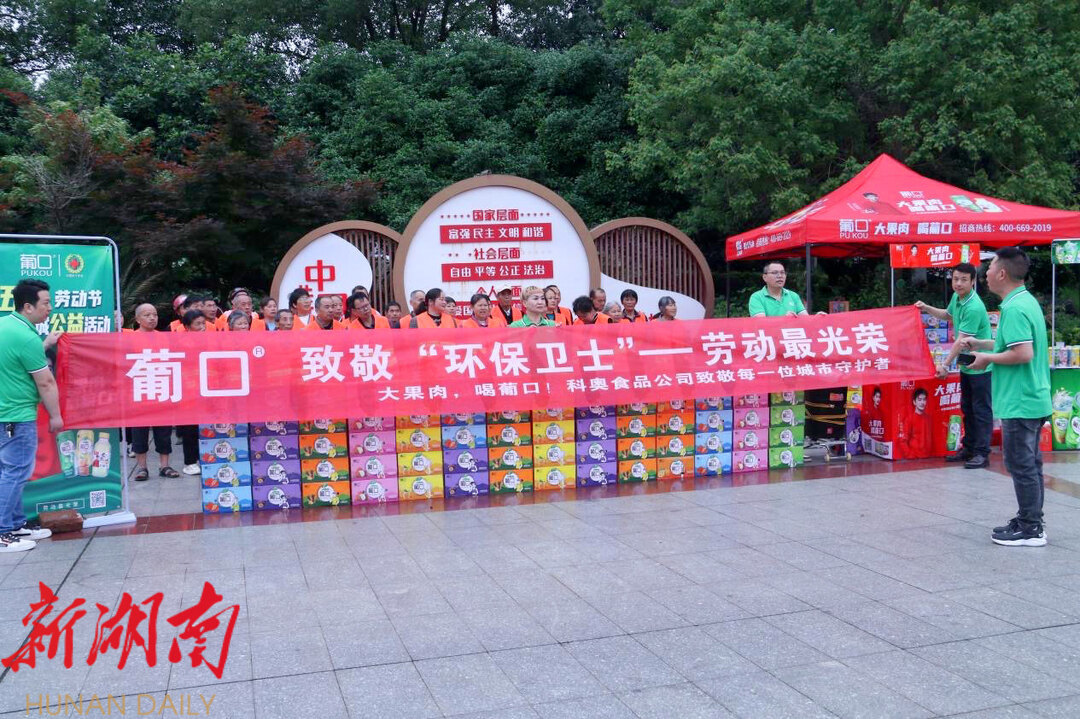 据介绍,此次公益活动共为环卫工人送上80箱葡口饮料、价值7000多元。