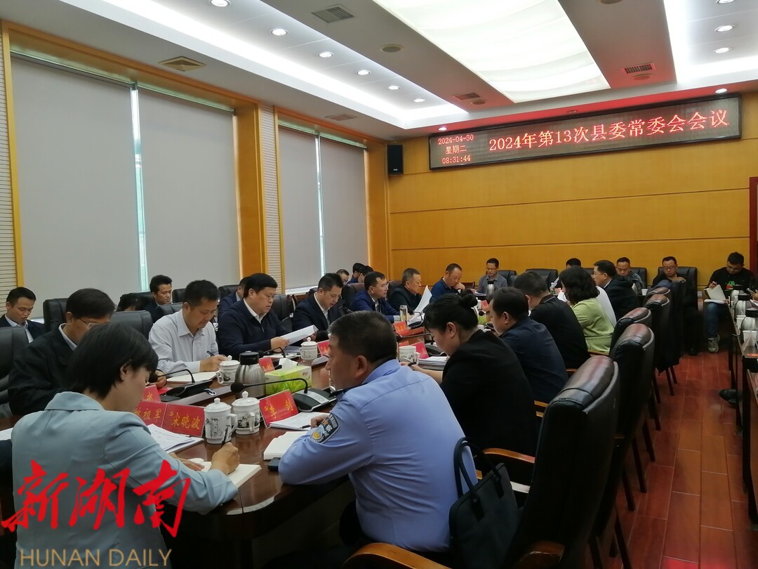 新湖南客户端5月1日讯(记者 郑湘)4月30日上午,湘西土家族苗族自治州古丈县委书记滕朝辉主持召开2024年第13次县委常委会会议,传达学习习近平总书记在《求是》杂志发表的重要文章精神、习近平总书记在新时代推动西部大开发座谈会上和在重庆考察时的重要讲话精神,传达学习省委十二届六次全会及学习贯彻习近平总书记考察湖南重要讲话和指示精神专题研讨班精神,听取有关工作情况汇报,审议相关文件,研究部署相关工作。